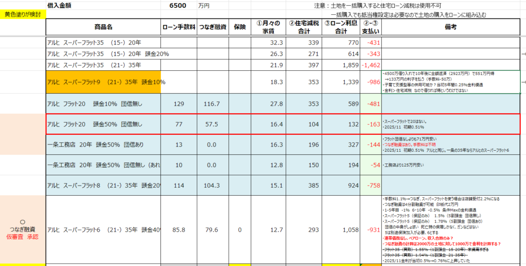 • フラット20・フラット35・変動金利を比較しながら、返済期間や月々の支払額をどう考えたか