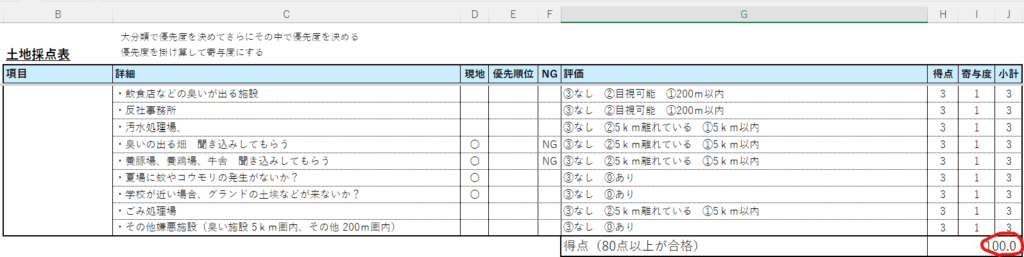 そこで、すべての土地を同じ基準で点数化し、後からでも比較しやすくするために採点表を作ったのは先述した通りです。