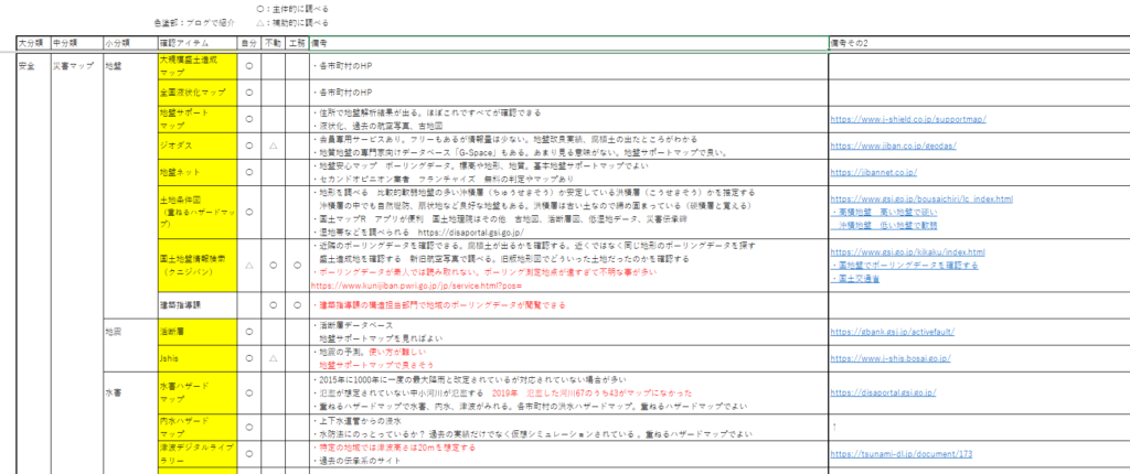 ネット上にも似たような表がないか探しましたが、納得のいくものがなかったため、自分で一から作ってしまいました。土地ではぜーーーったい失敗したくなかったからです😤