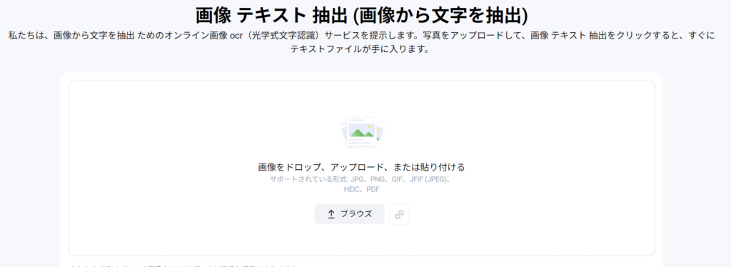 以下のようなサイトでOCR(文字認識)ツールを使って、画像からテキストデータを取得します。