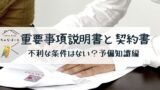 重説と契約書には共通する内容が多いため、チェックするときはまず重説から確認するのがおすすめです。